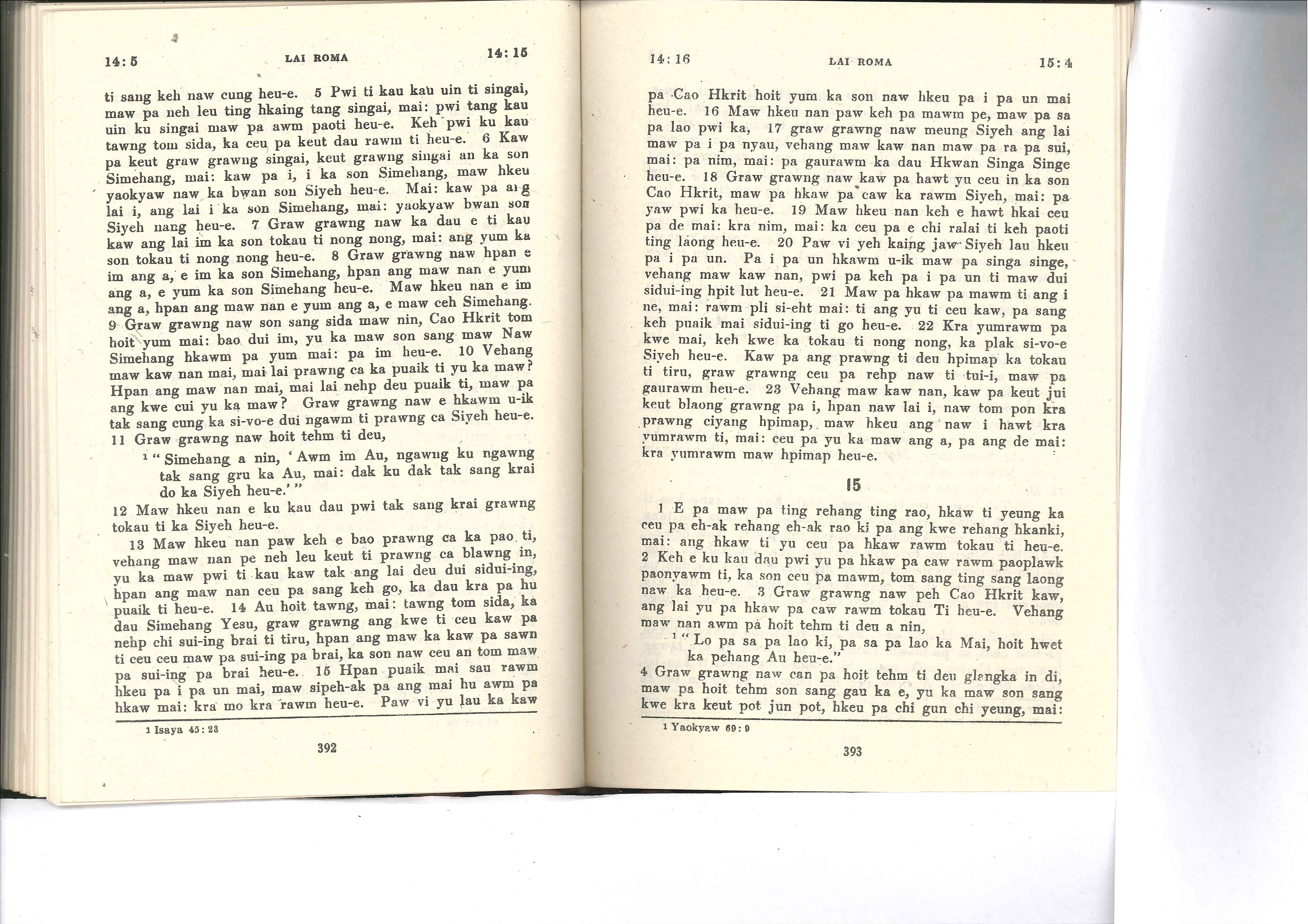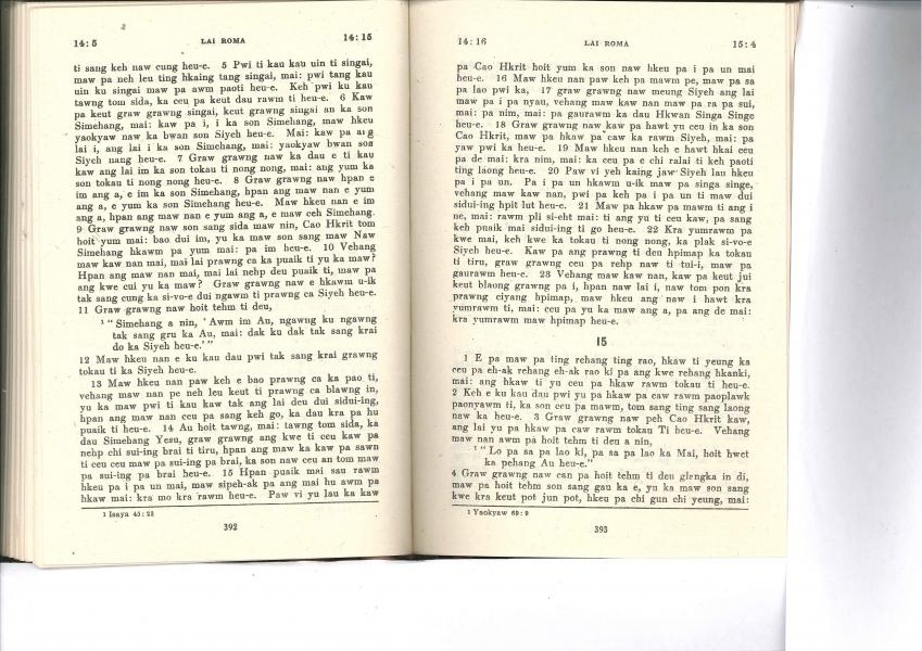 1985年佤文新約全書 羅馬書 14 章 5 節到 15 章 4 節