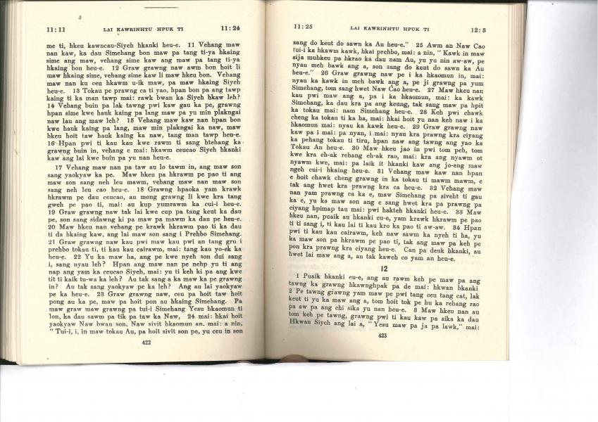 1985年佤文新約全書 哥林多前書 11 章 11 節到 12 章 3 節