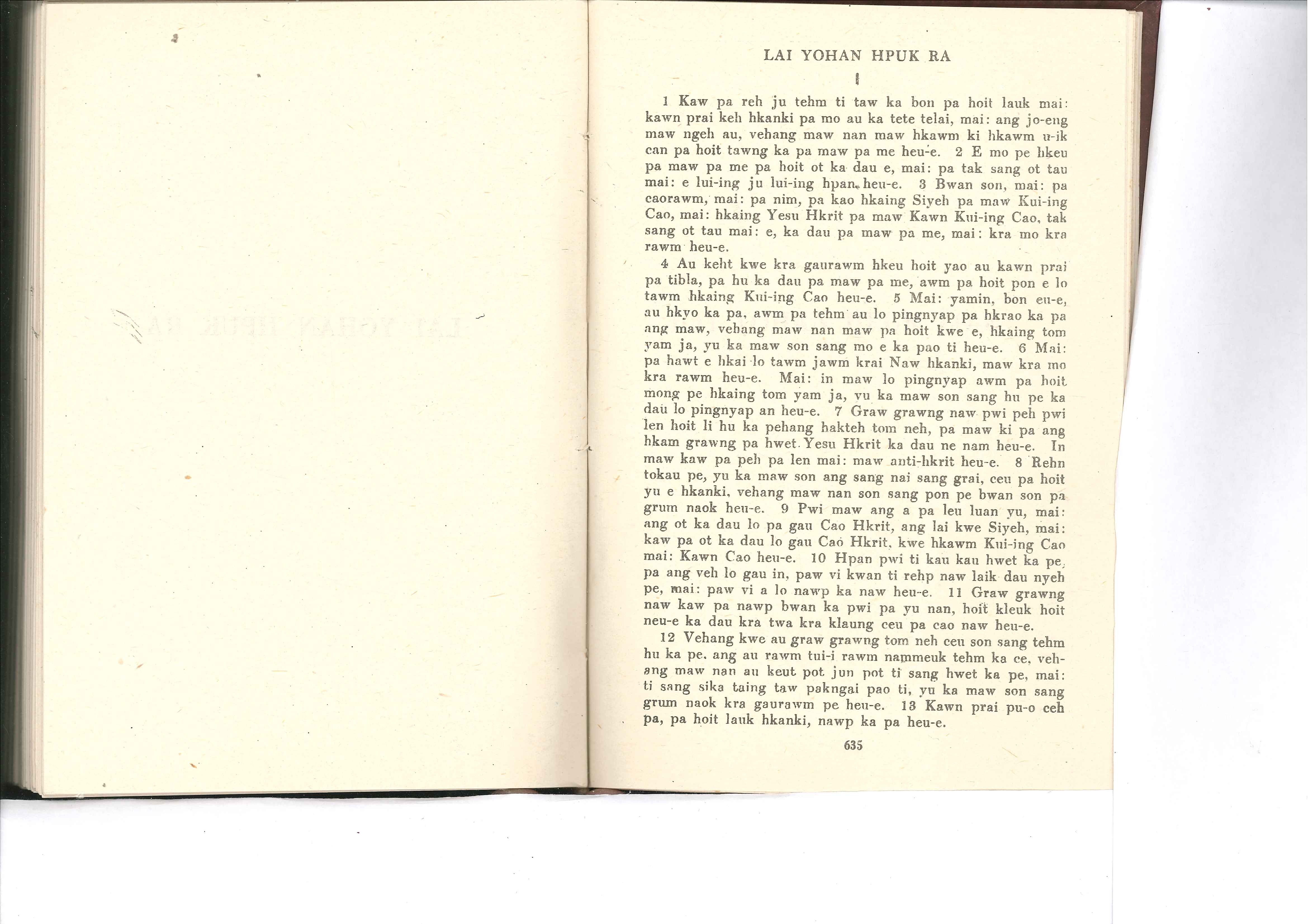 1985年佤文新約全書 約翰二書 1 章 1 節到 1 章 13 節