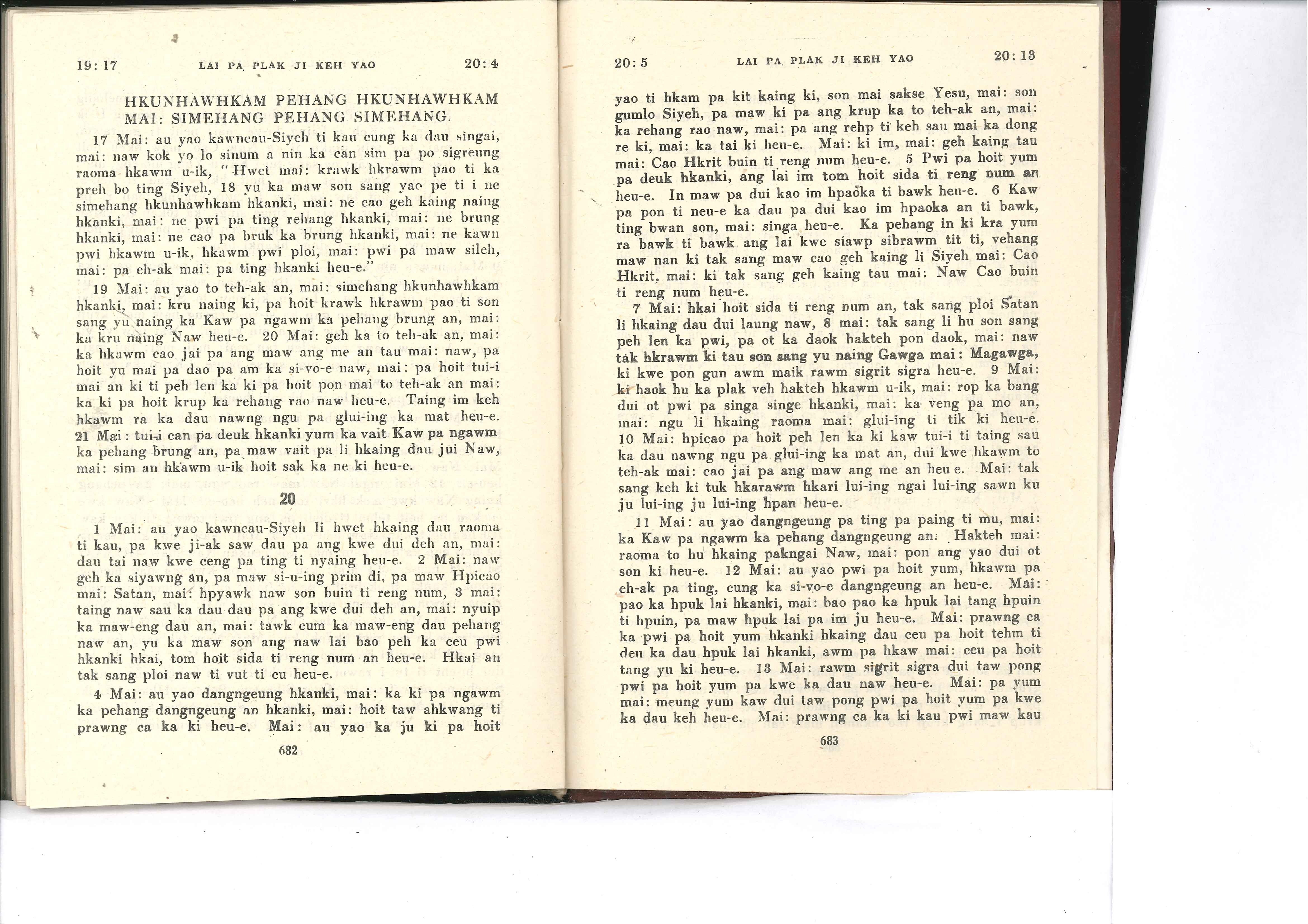 1985年佤文新約全書 啟示錄 19 章 17 節到 20 章 13 節