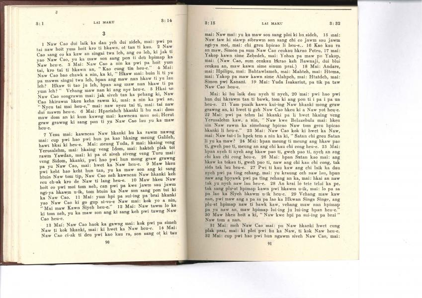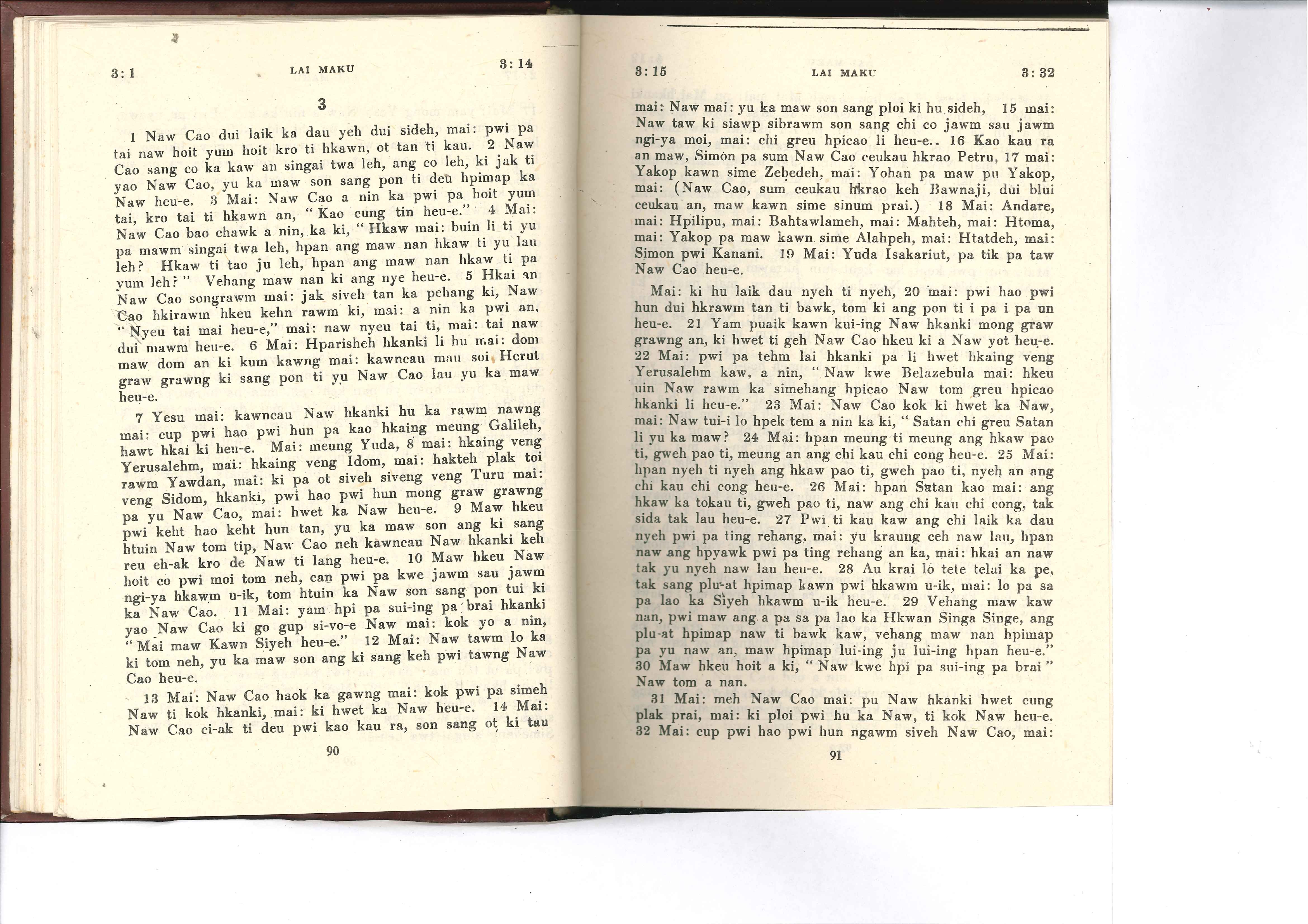 1985年佤文新約全書 馬可福音 3 章 1 節到 3 章 32 節