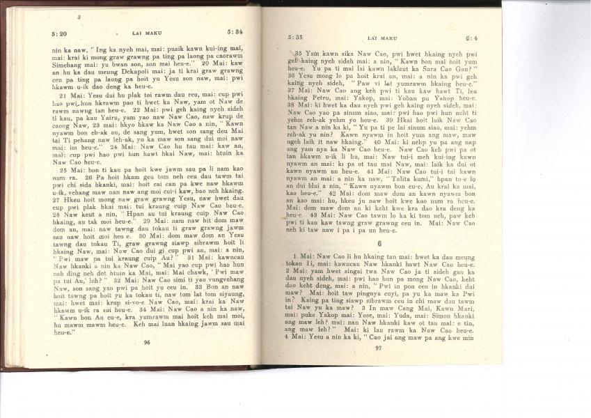 1985年佤文新約全書 馬可福音 5 章 20 節到 6 章 4 節