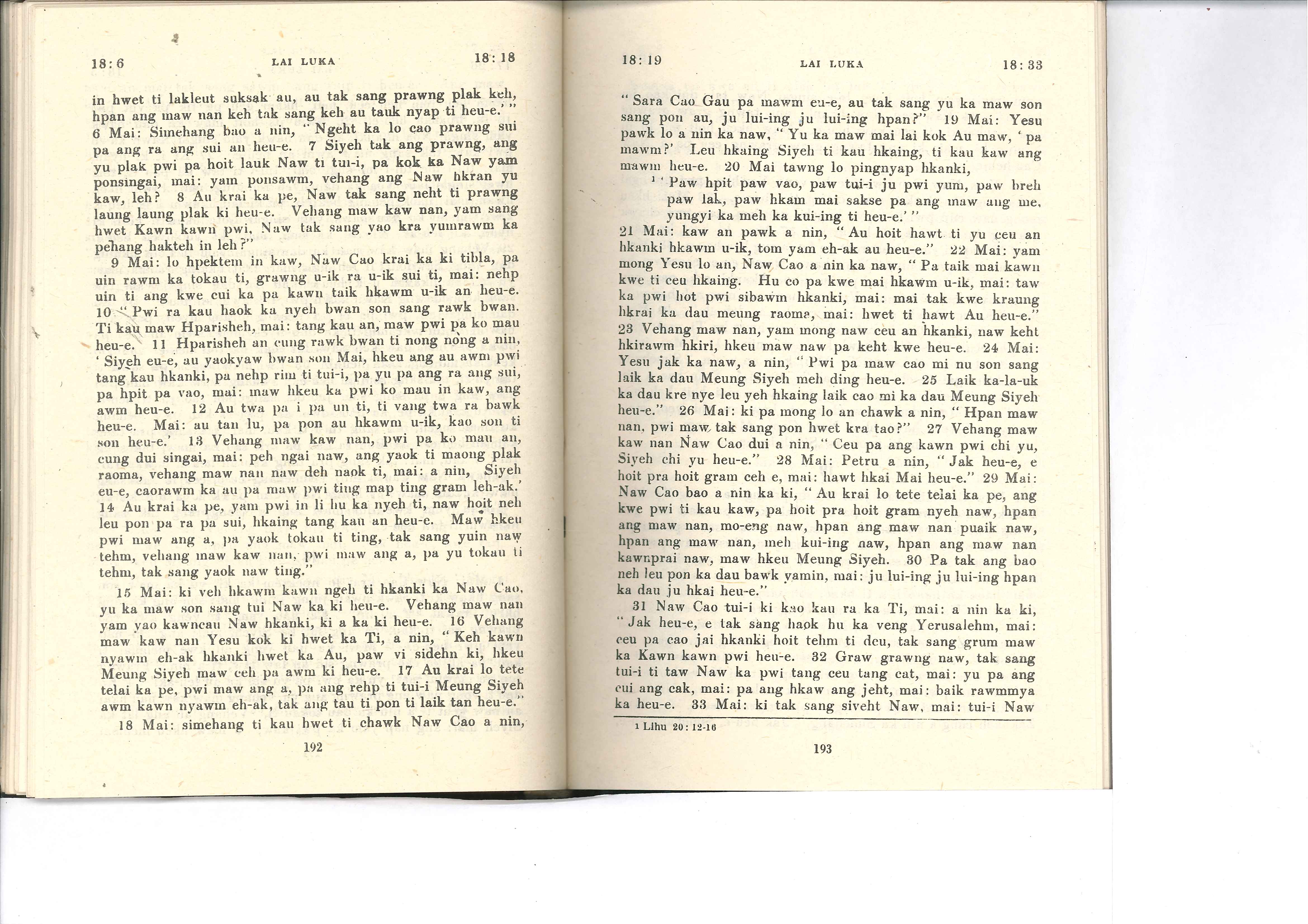 1985年佤文新約全書 路加福音 18 章 6 節到 18 章 33 節