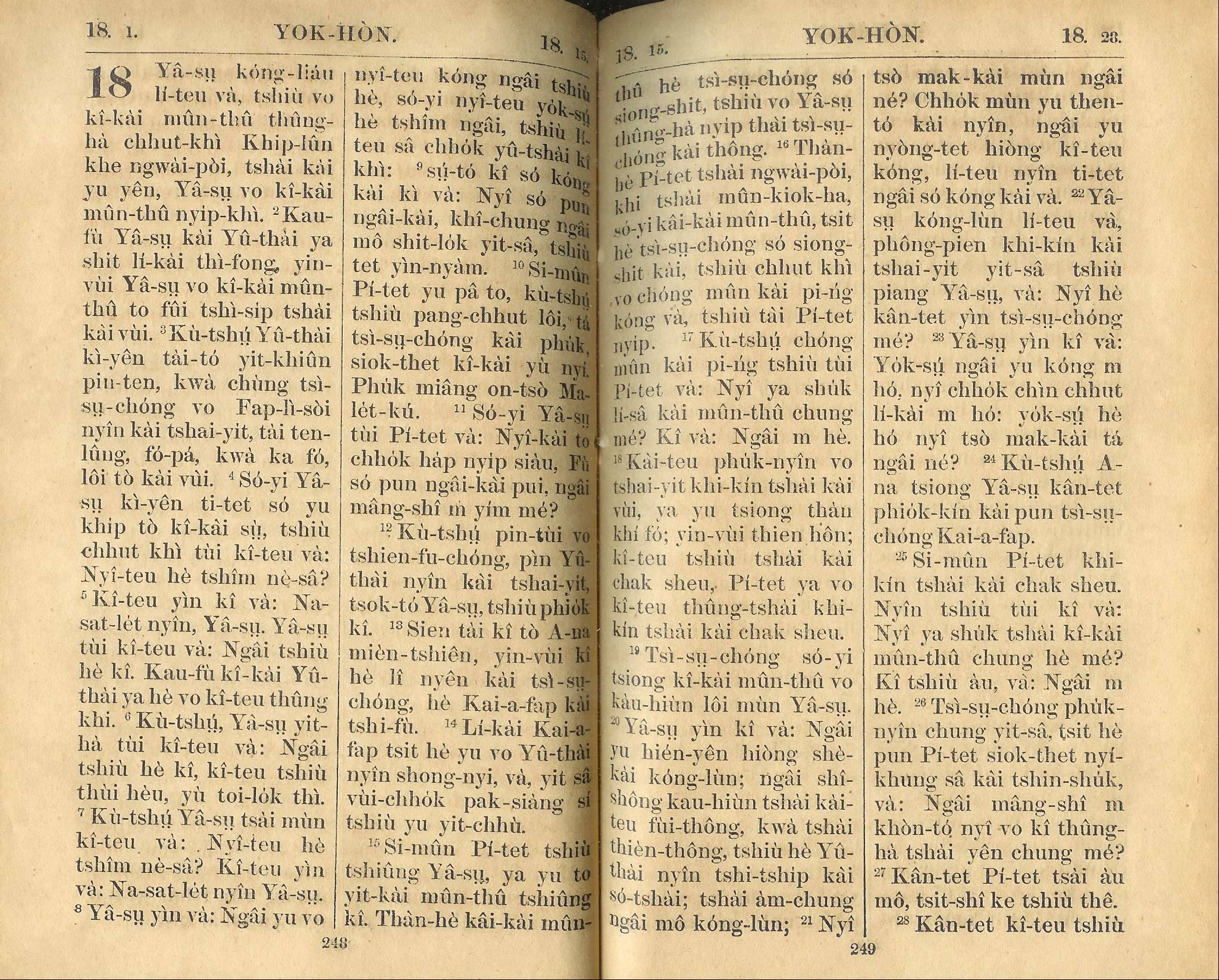 1924年新約全書 約翰福音 18 章 1 節到 18 章 28 節