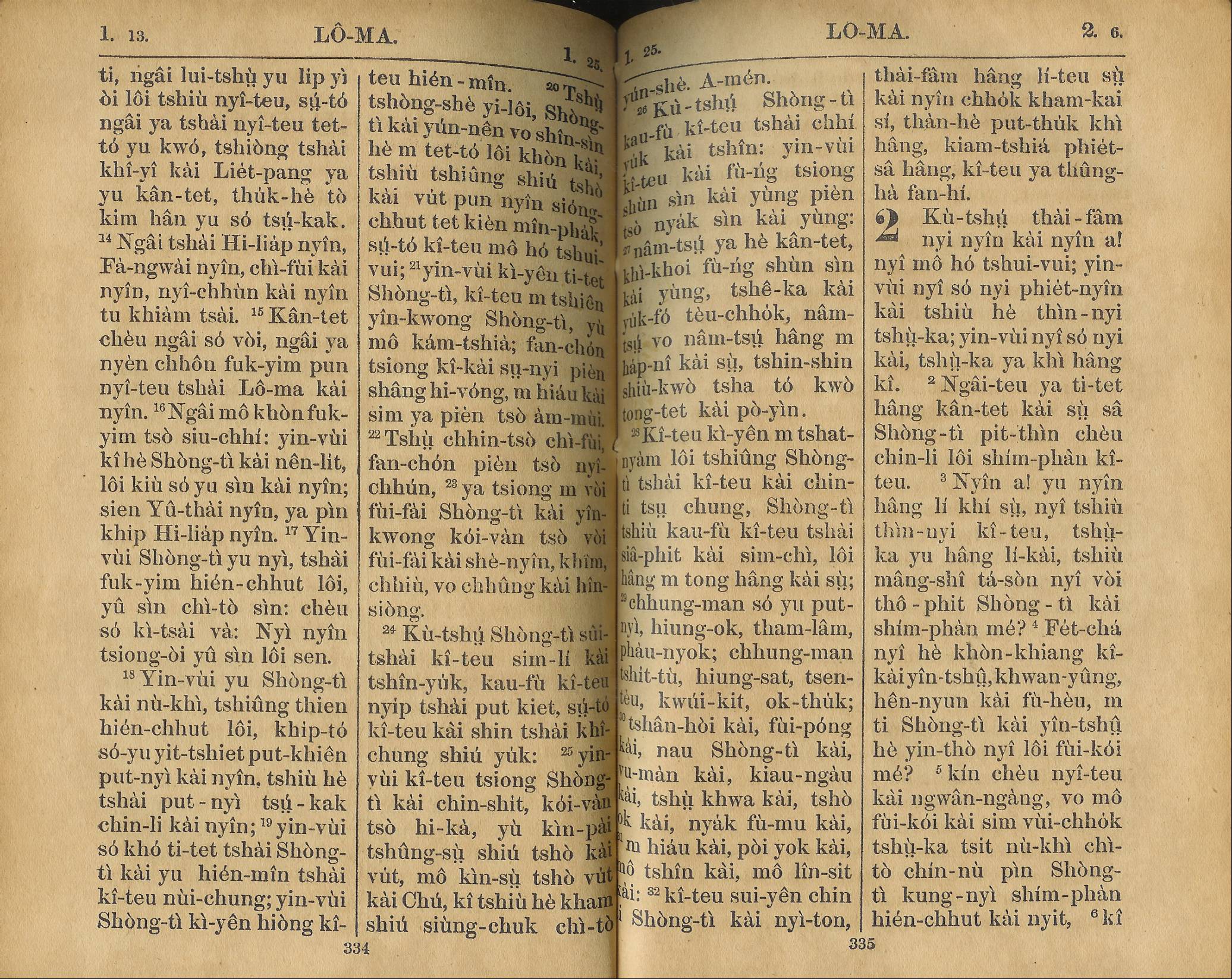 1924年新約全書 羅馬書 1 章 13 節到 2 章 6 節