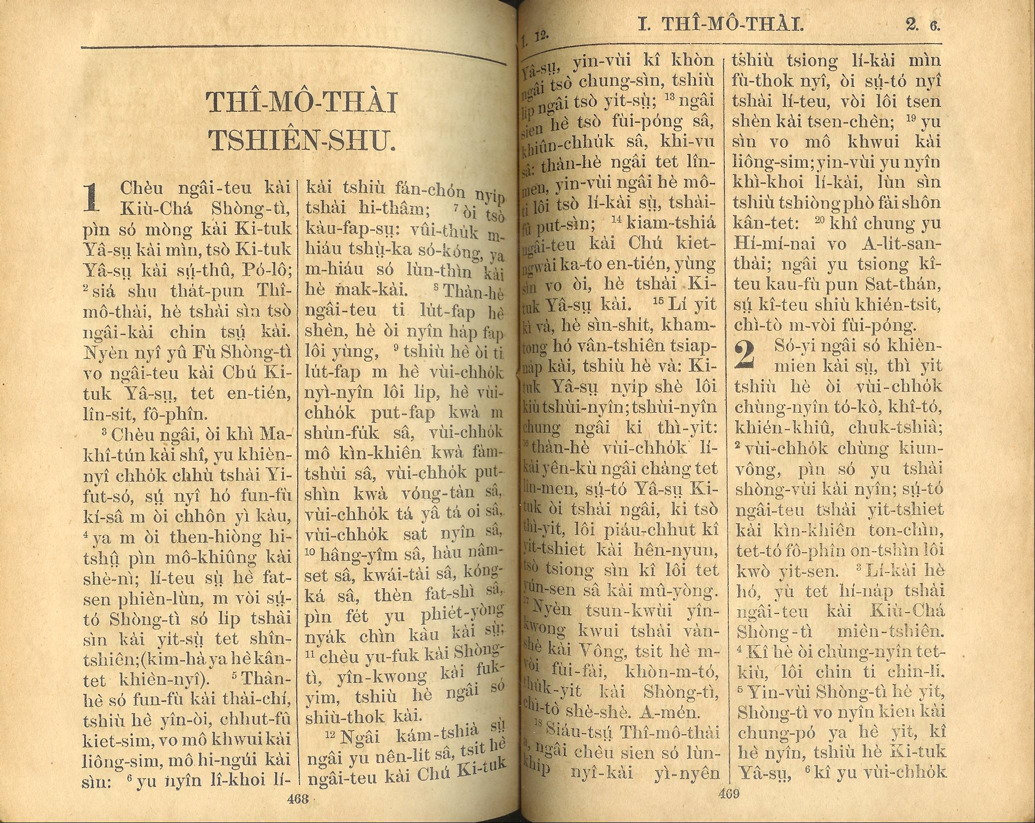 1924年新約全書 提摩太前書 1 章 1 節到 2 章 6 節