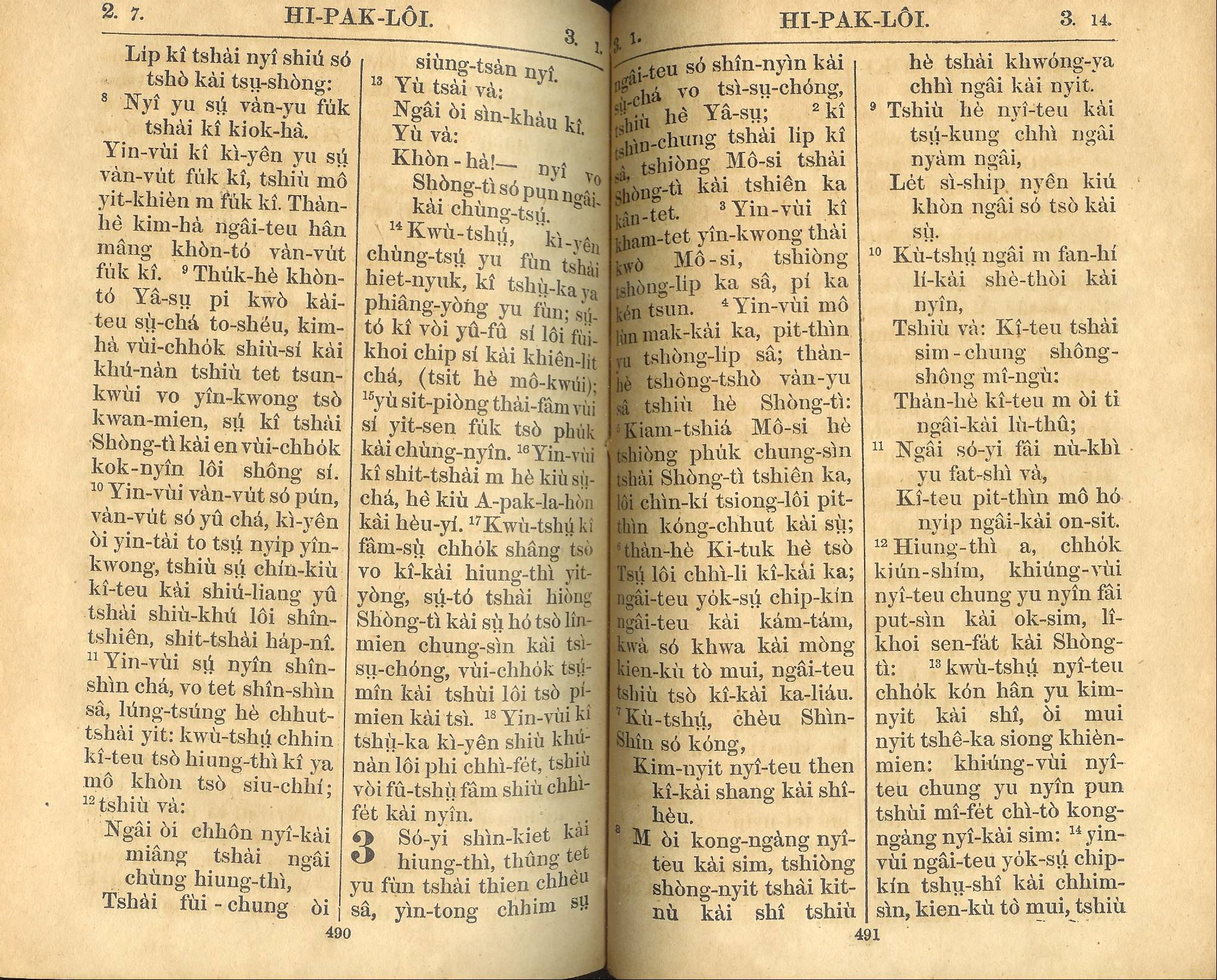 1924年新約全書 希伯來書 2 章 7 節到 3 章 14 節