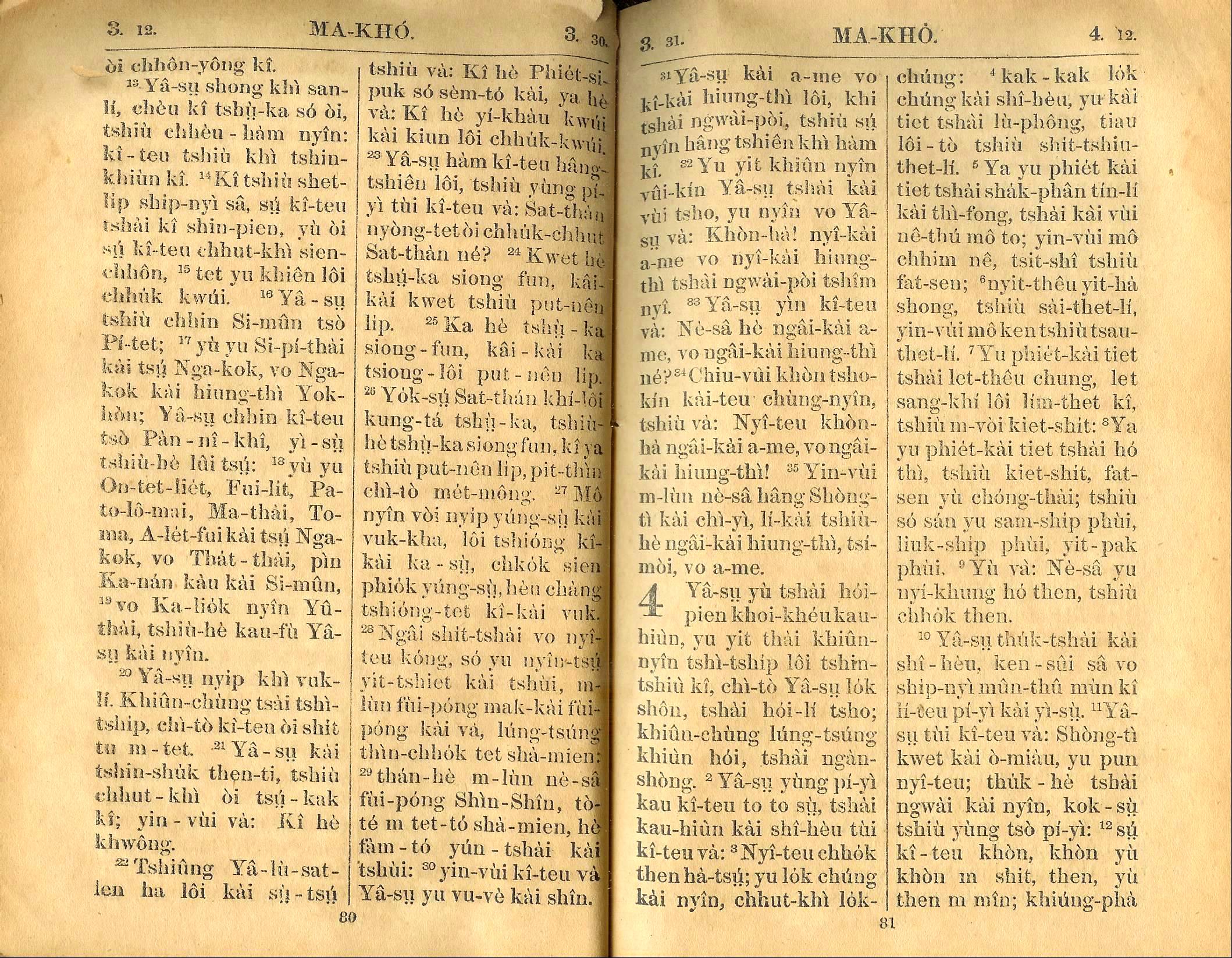 1924年新約全書 馬可福音 3 章 12 節到 4 章 12 節