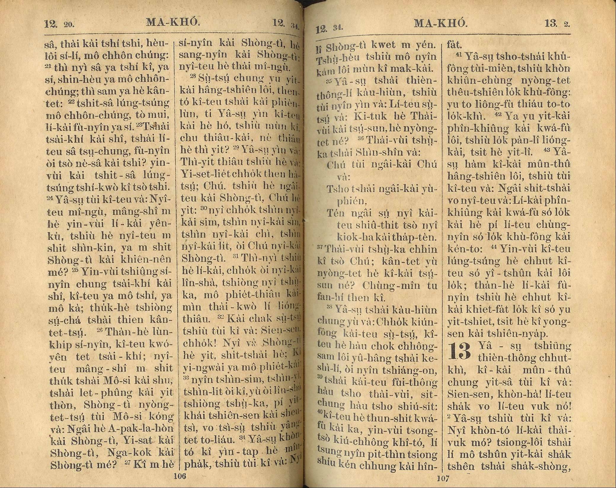 1924年新約全書 馬可福音 12 章 20 節到 13 章 2 節