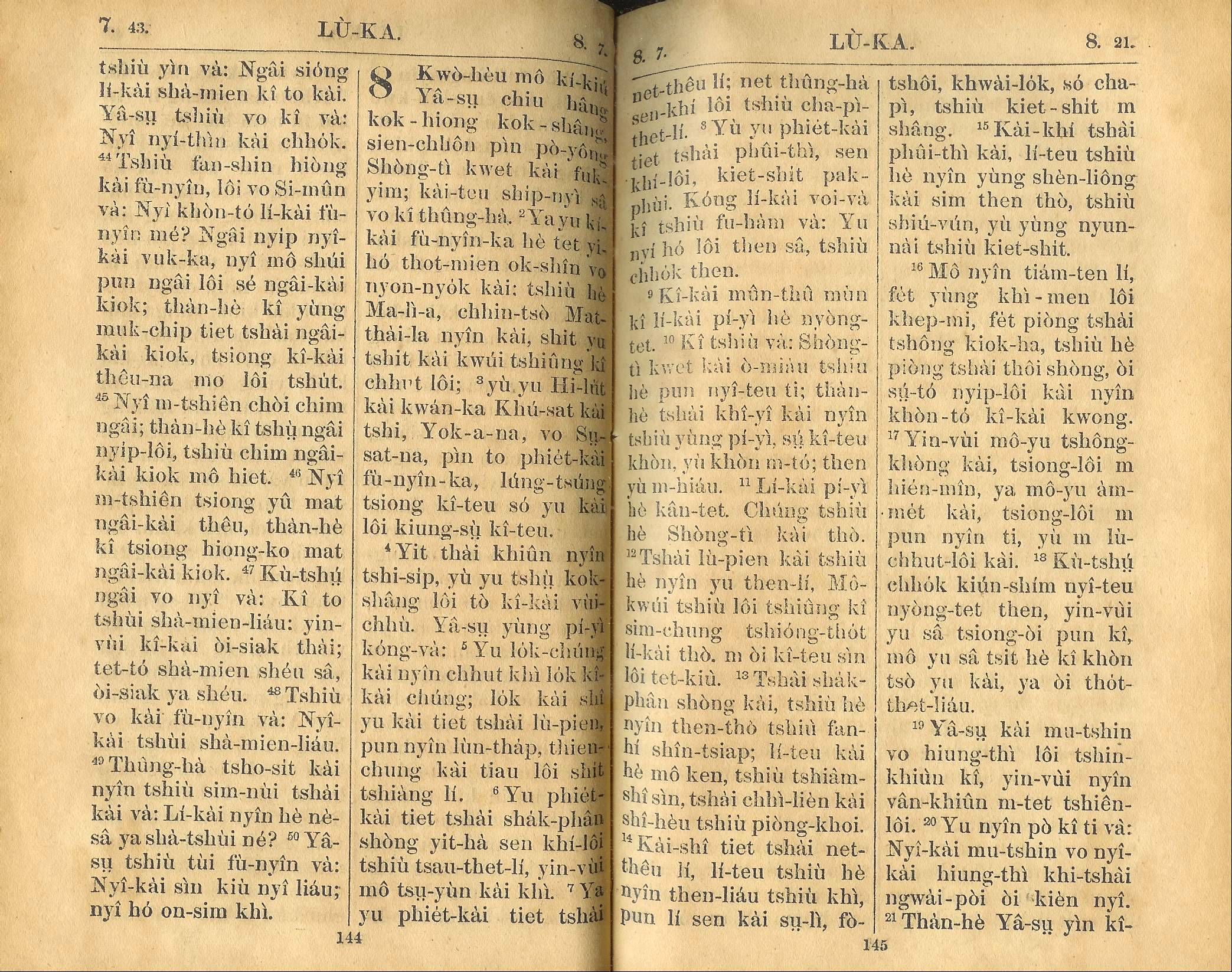 1924年新約全書 路加福音 7 章 43 節到 8 章 21 節