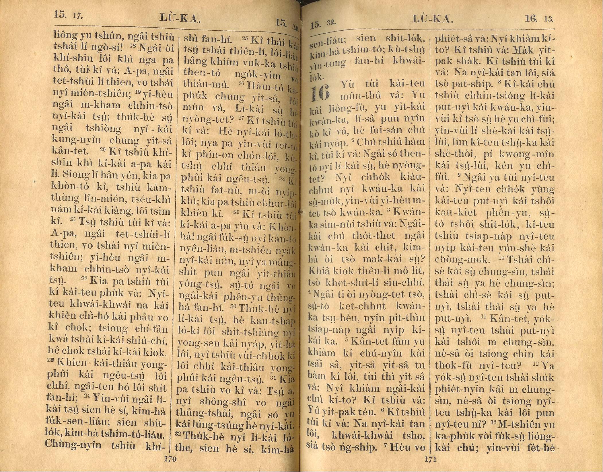 1924年新約全書 路加福音 15 章 17 節到 16 章 13 節
