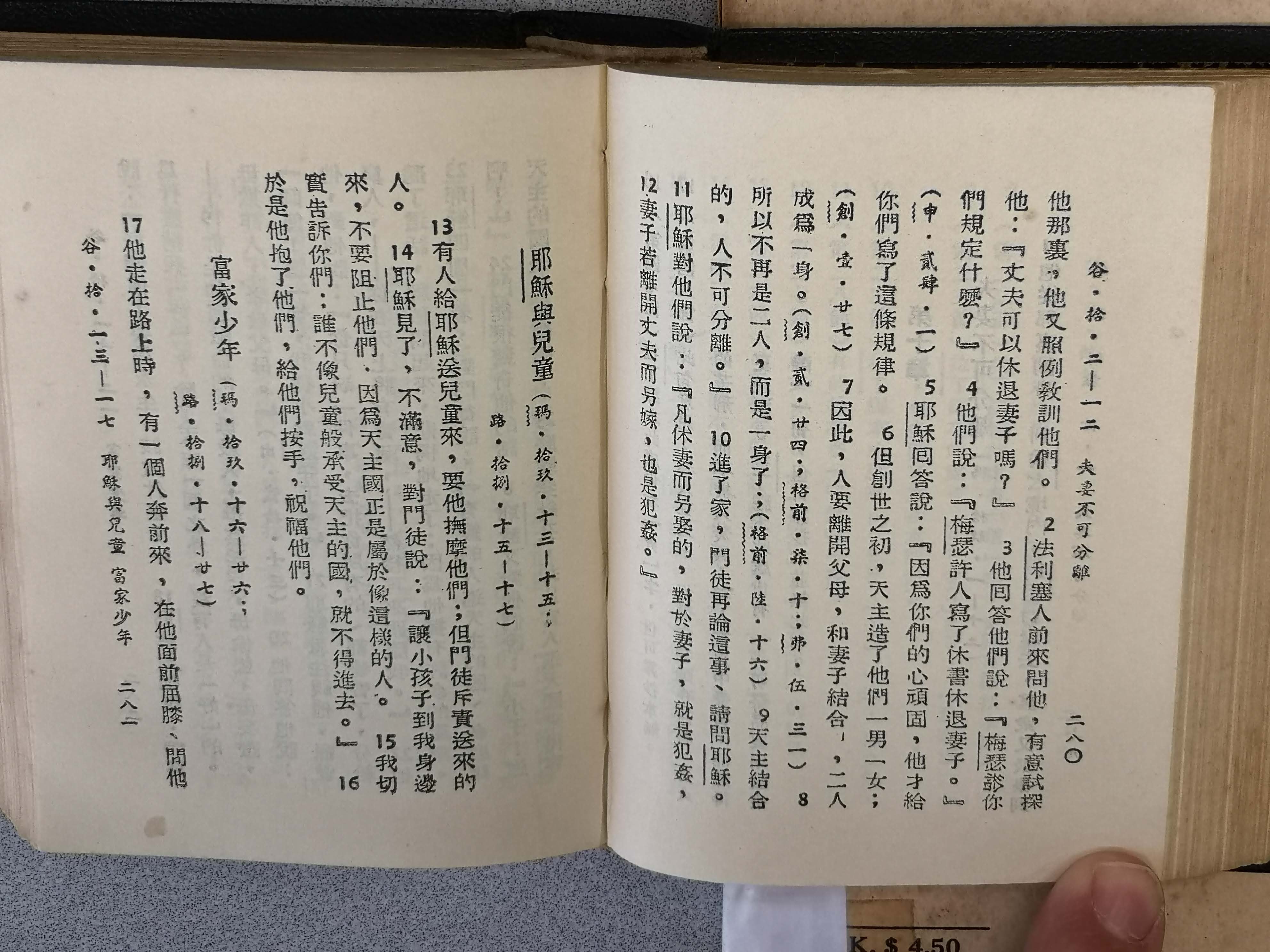 1953年新譯福音初稿 馬可福音 10 章 2 節到 10 章 17 節