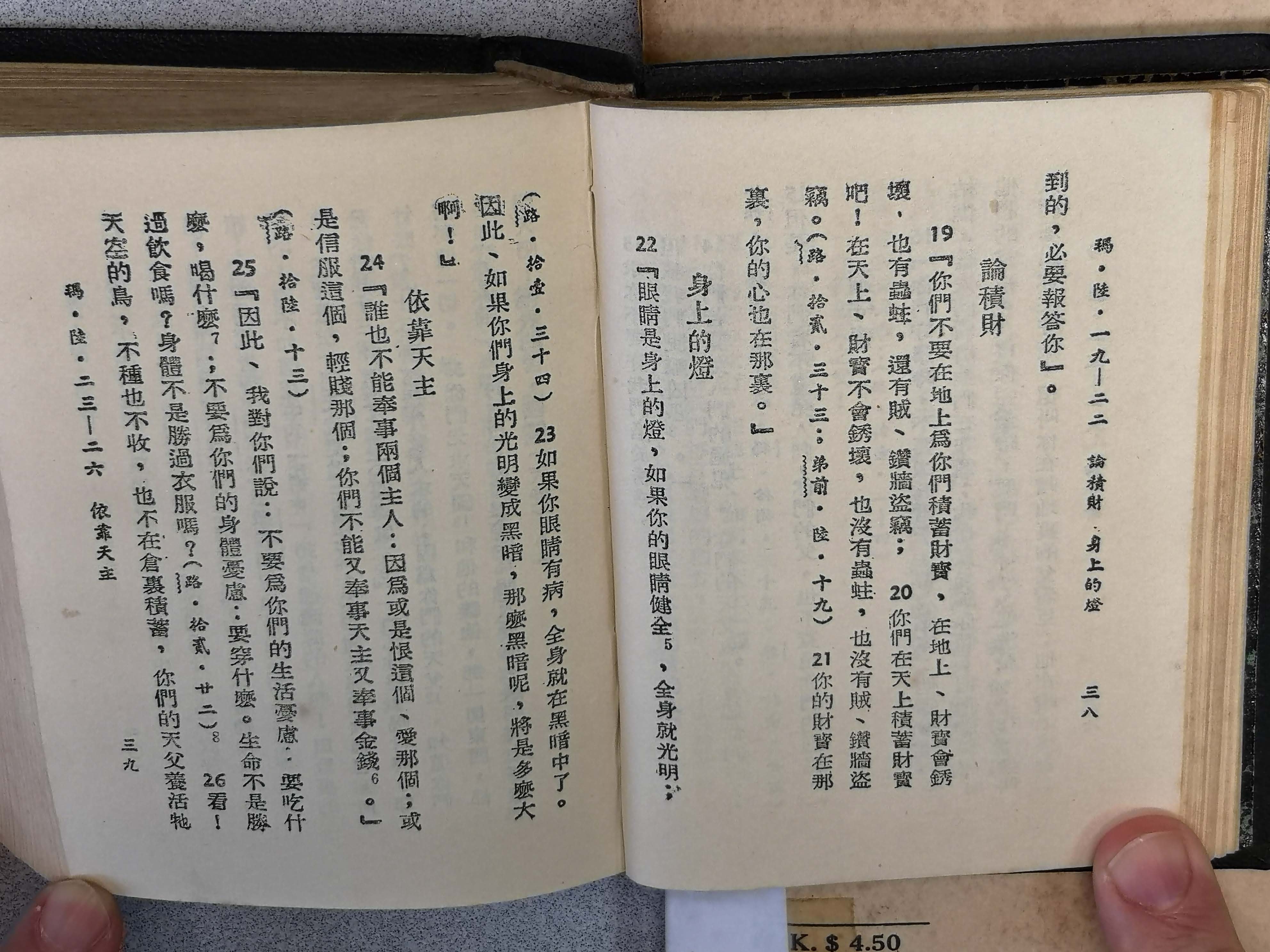 1953年新譯福音初稿 馬太福音 6 章 19 節到 6 章 26 節