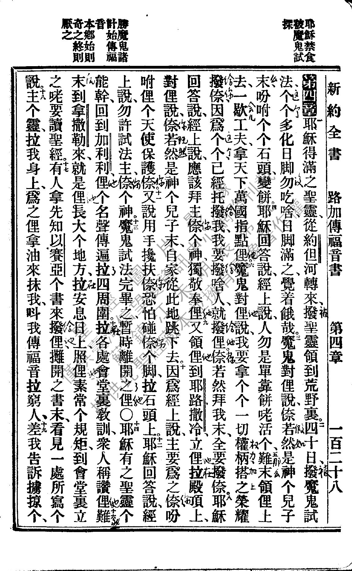 1922年新約全書 路加福音 4 章 1 節到 4 章 19 節