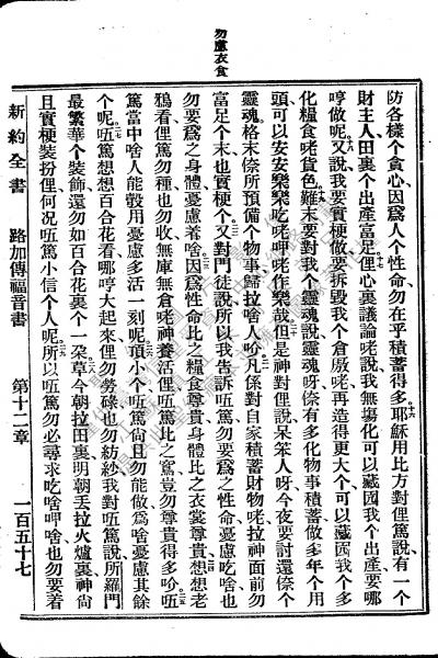 1922年新約全書 路加福音 12 章 16 節到 12 章 29 節