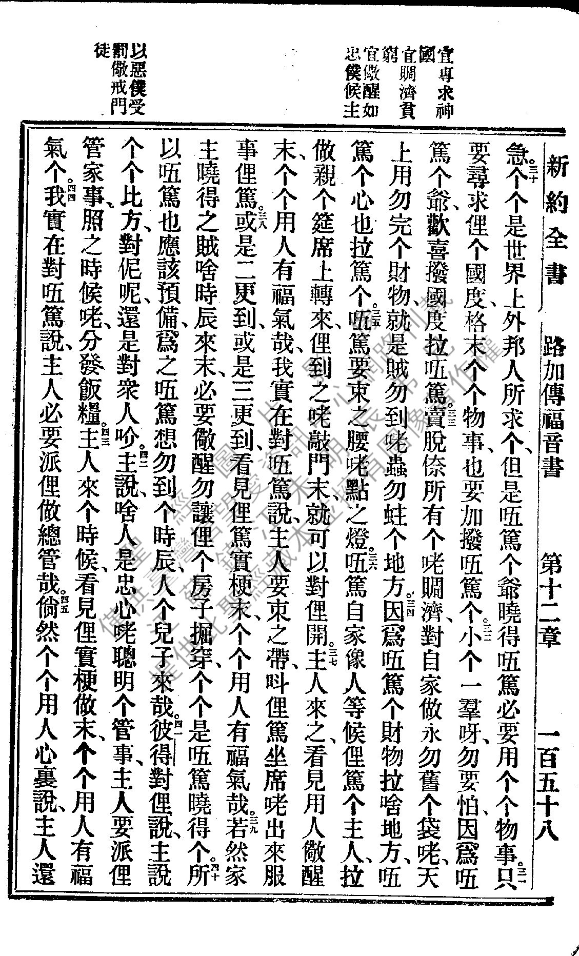 1922年新約全書 路加福音 12 章 30 節到 12 章 45 節