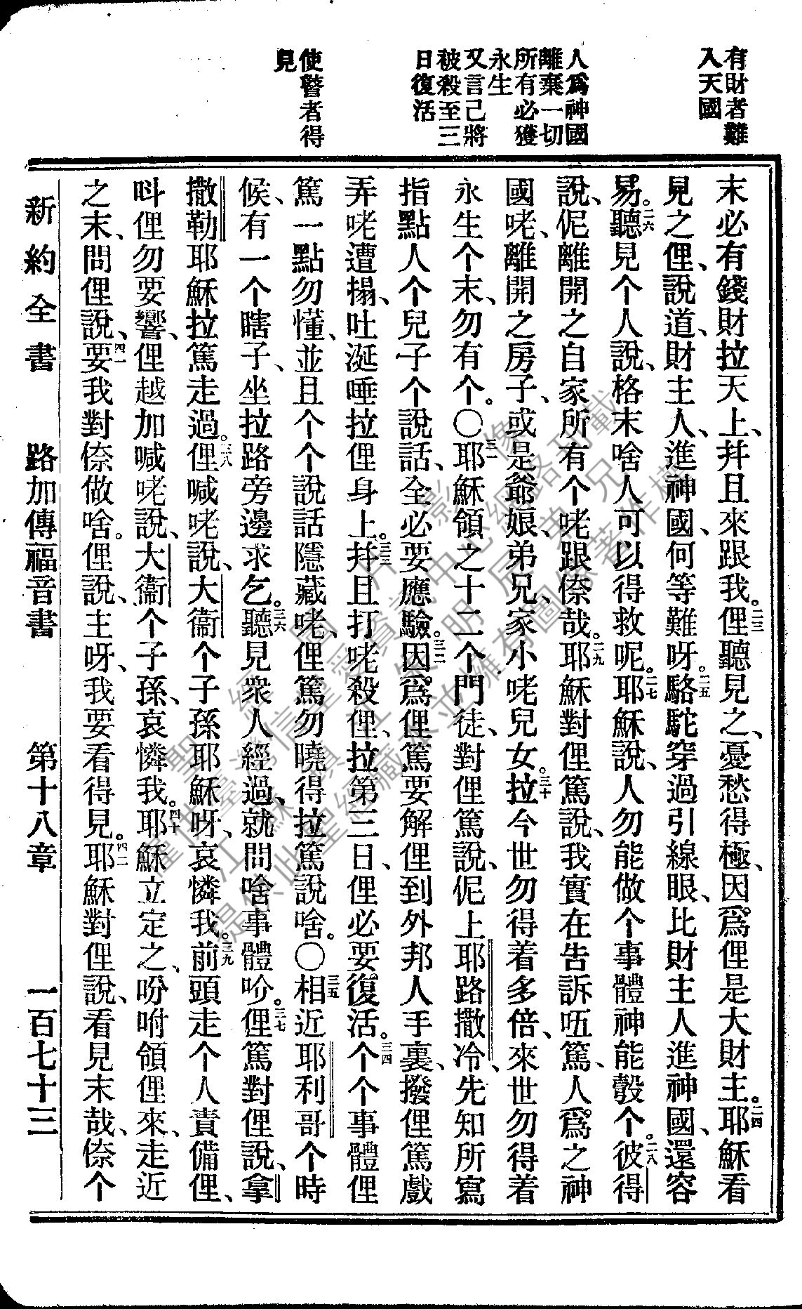 1922年新約全書 路加福音 18 章 23 節到 18 章 42 節
