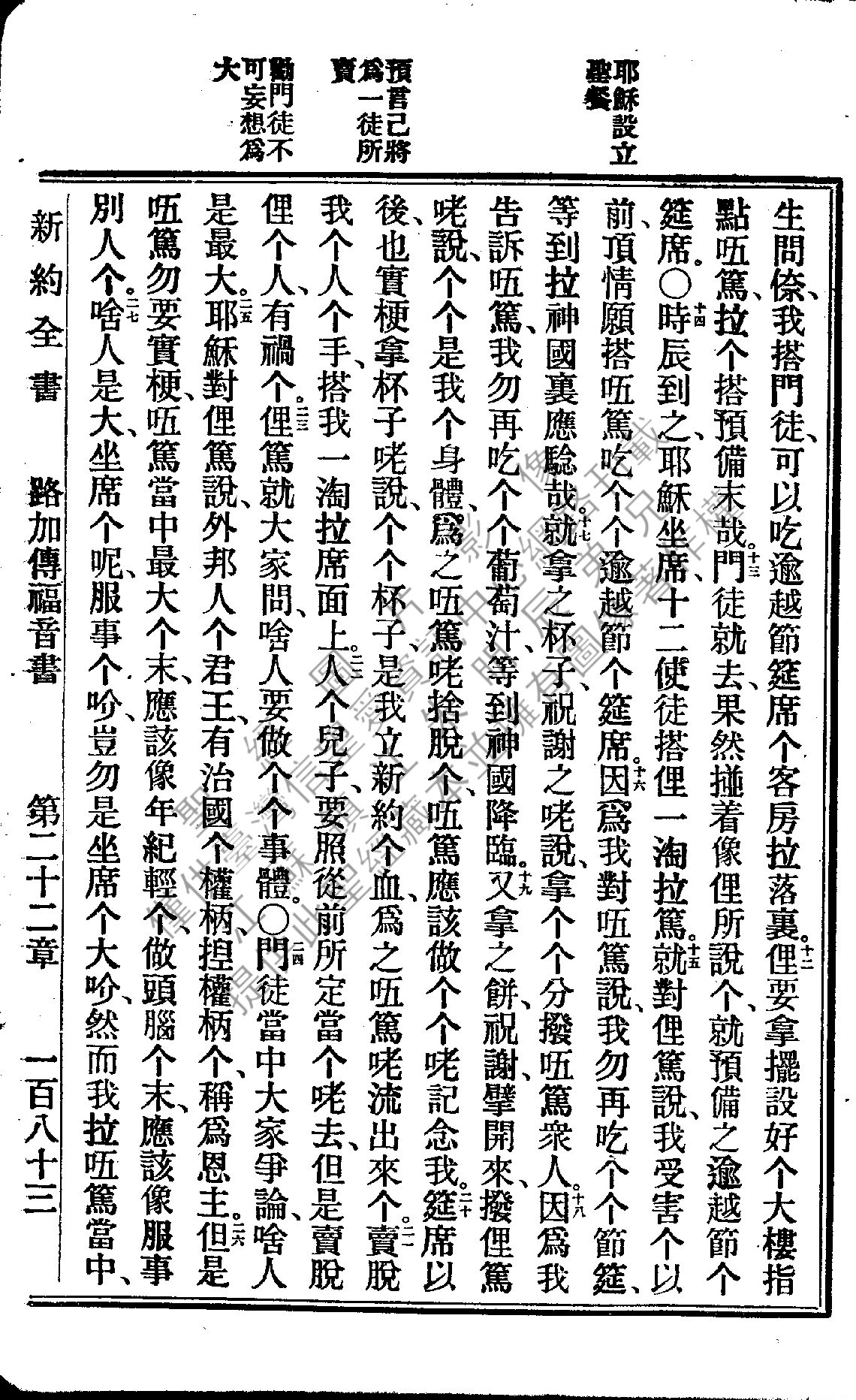 1922年新約全書 路加福音 22 章 12 節到 22 章 27 節