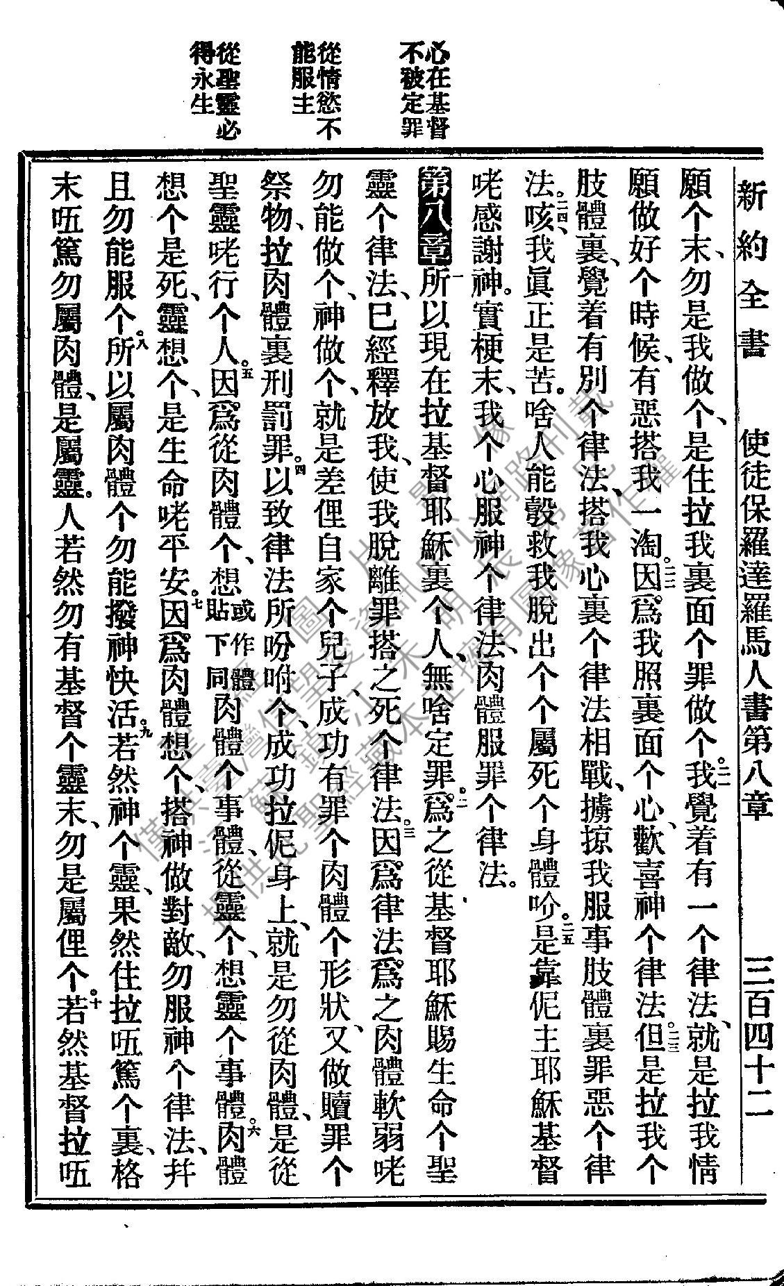 1922年新約全書 羅馬書 7 章 21 節到 8 章 10 節