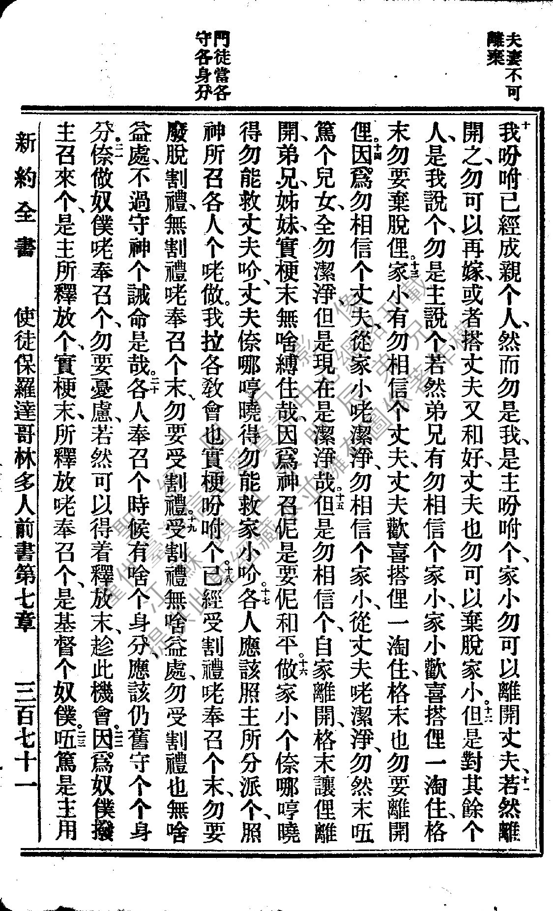 1922年新約全書 哥林多前書 7 章 10 節到 7 章 23 節