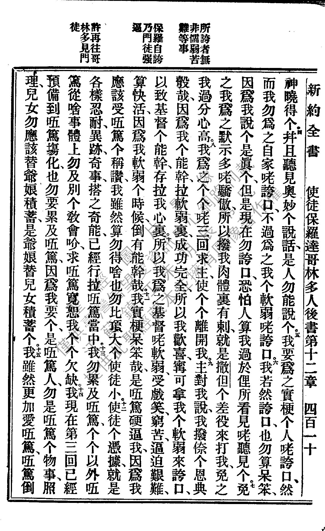 1922年新約全書 哥林多後書 12 章 4 節到 12 章 15 節
