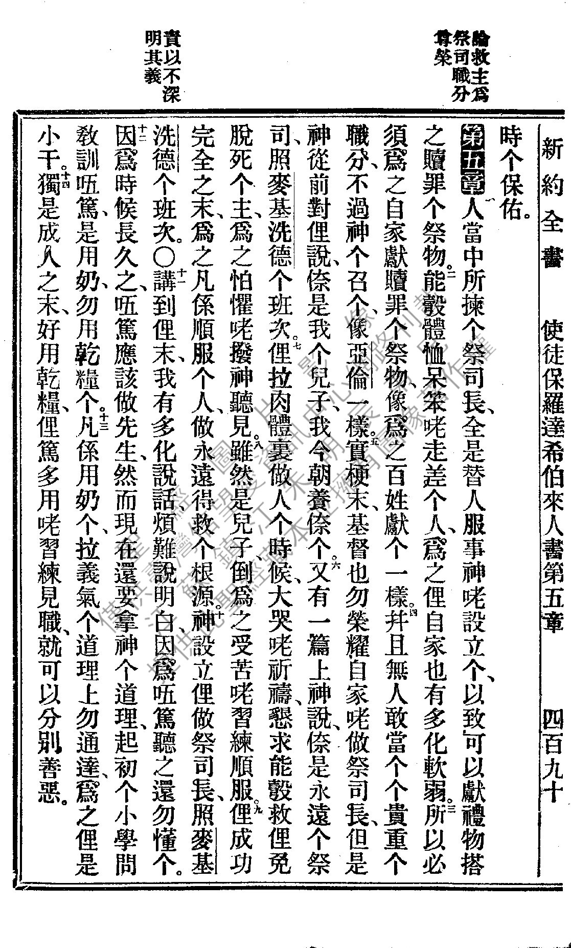 1922年新約全書 希伯來書 5 章 1 節到 5 章 14 節