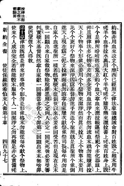 1922年新約全書 希伯來書 9 章 19 節到 10 章 2 節
