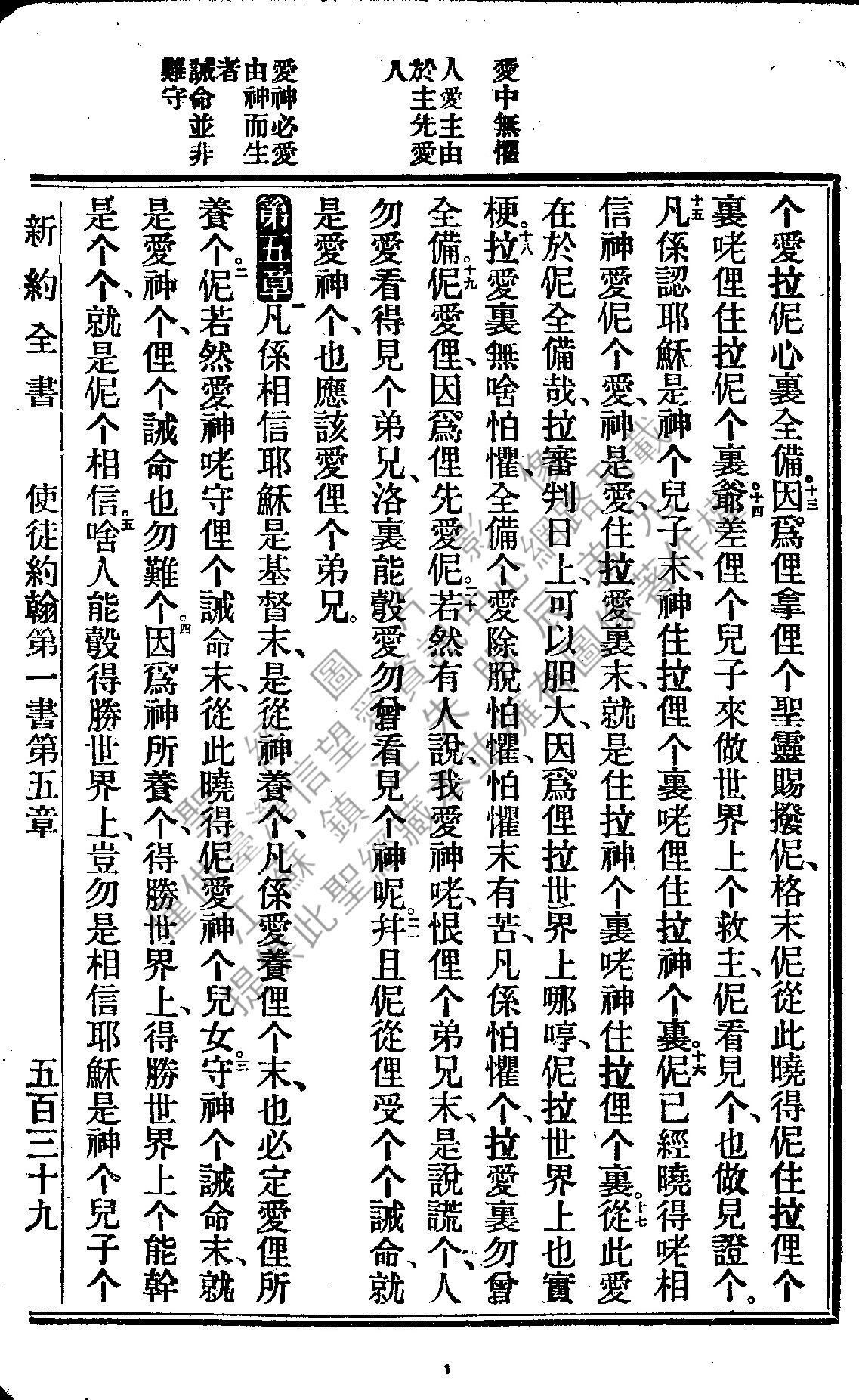 1922年新約全書 約翰一書 4 章 13 節到 5 章 5 節