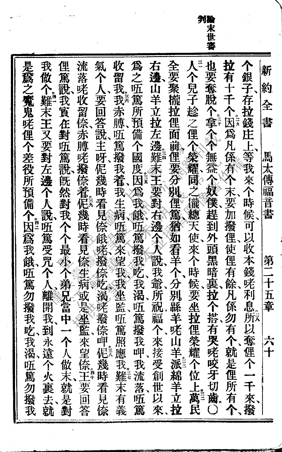 1922年新約全書 馬太福音 25 章 28 節到 25 章 42 節