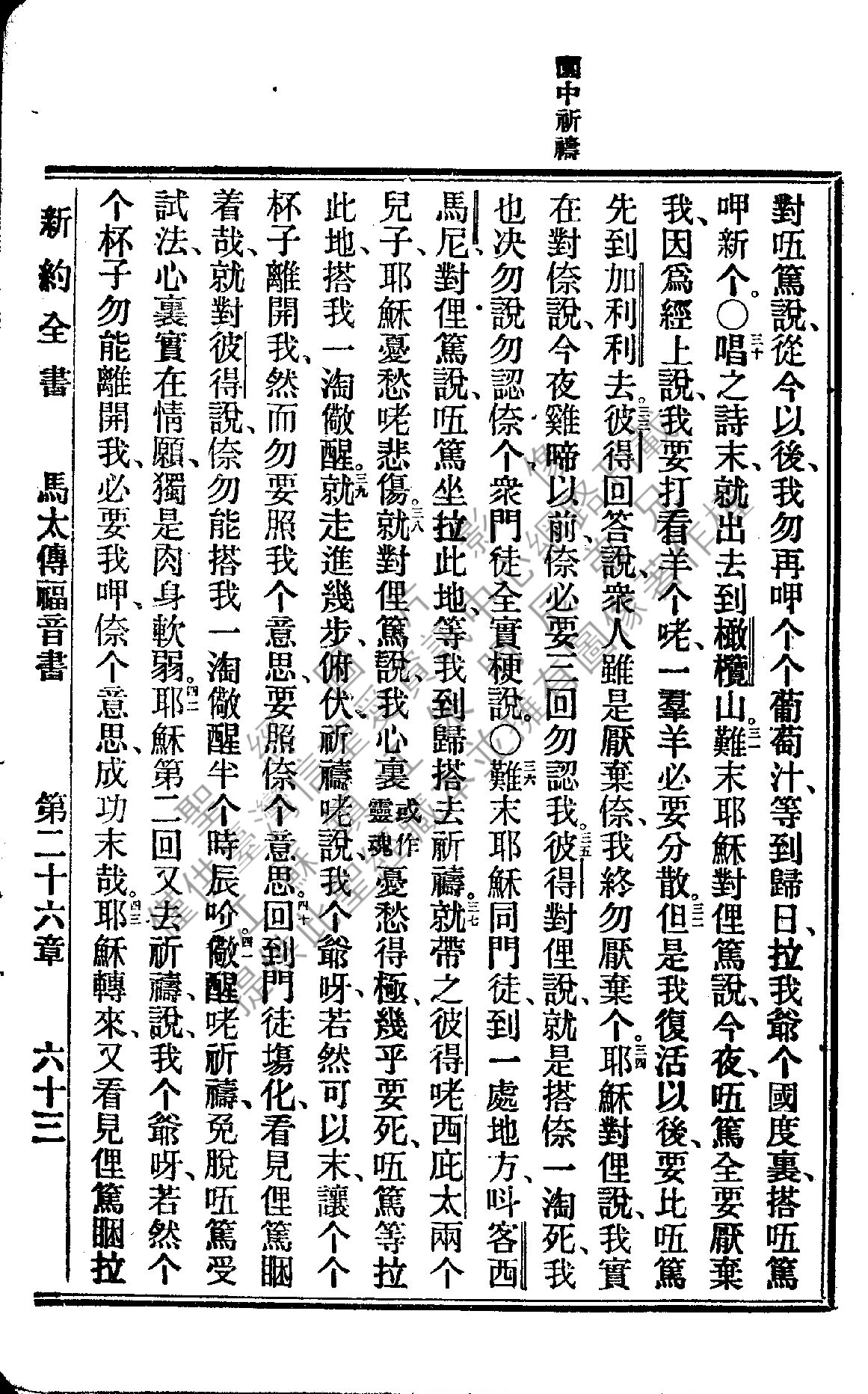 1922年新約全書 馬太福音 26 章 30 節到 26 章 43 節