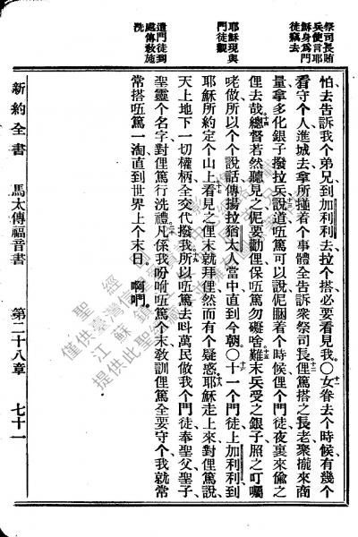 1922年新約全書 馬太福音 28 章 11 節到 28 章 20 節
